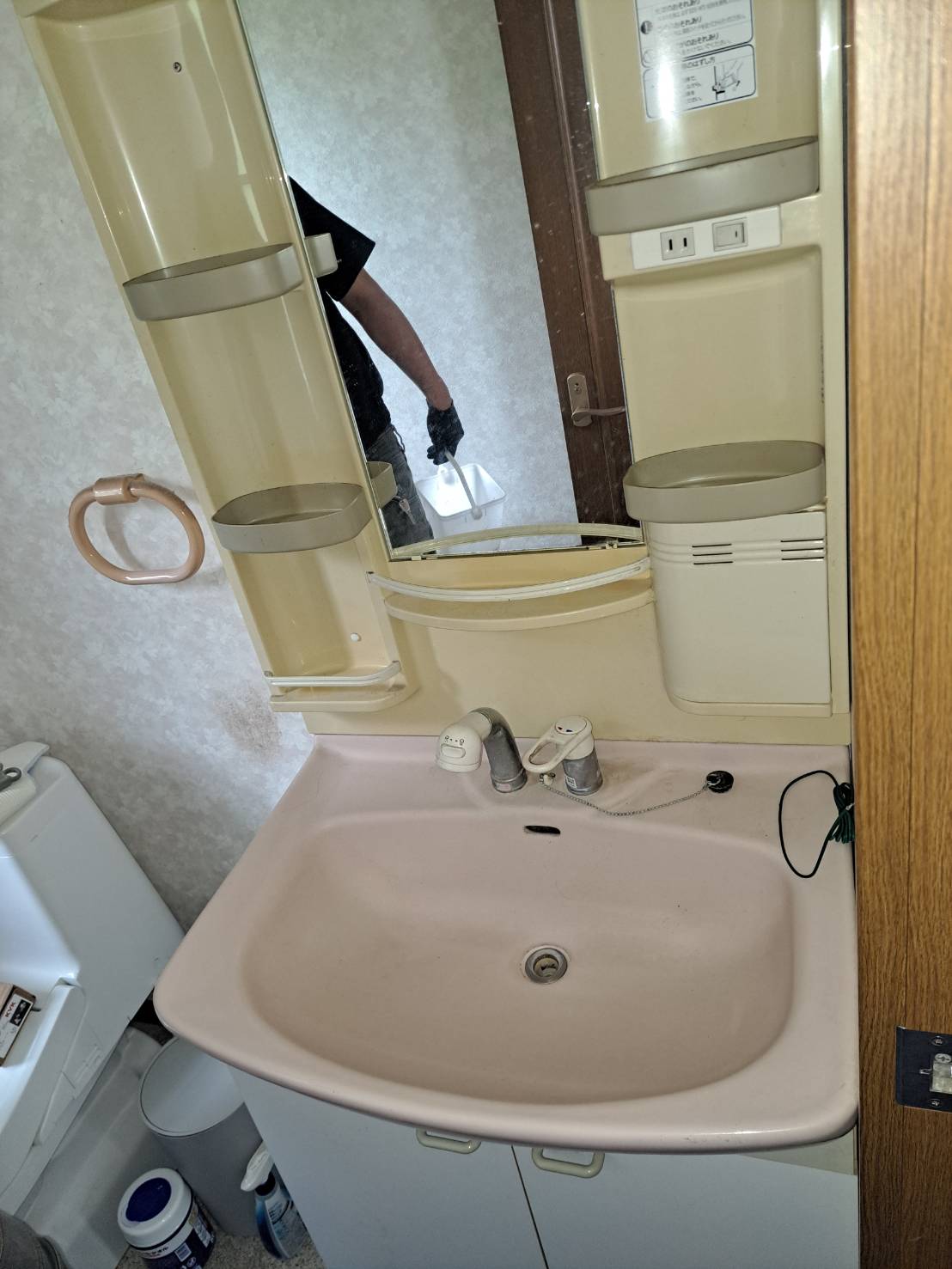 22年使用していて洗面台の床板も水栓からの水漏れでボロボロになっていたのでお客様とご相談し部品交換ではなく新しい洗面台に交換いたしました。